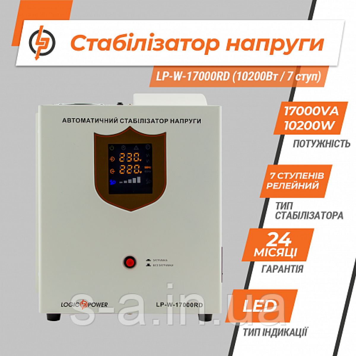 Релейний стабілізатор LP-W-17000RD (10200 Вт/7ступ) убезпечить вашу техніку від мережевих перевантажень, амплітудних стрибків мережевої напруги та короткого замикання.