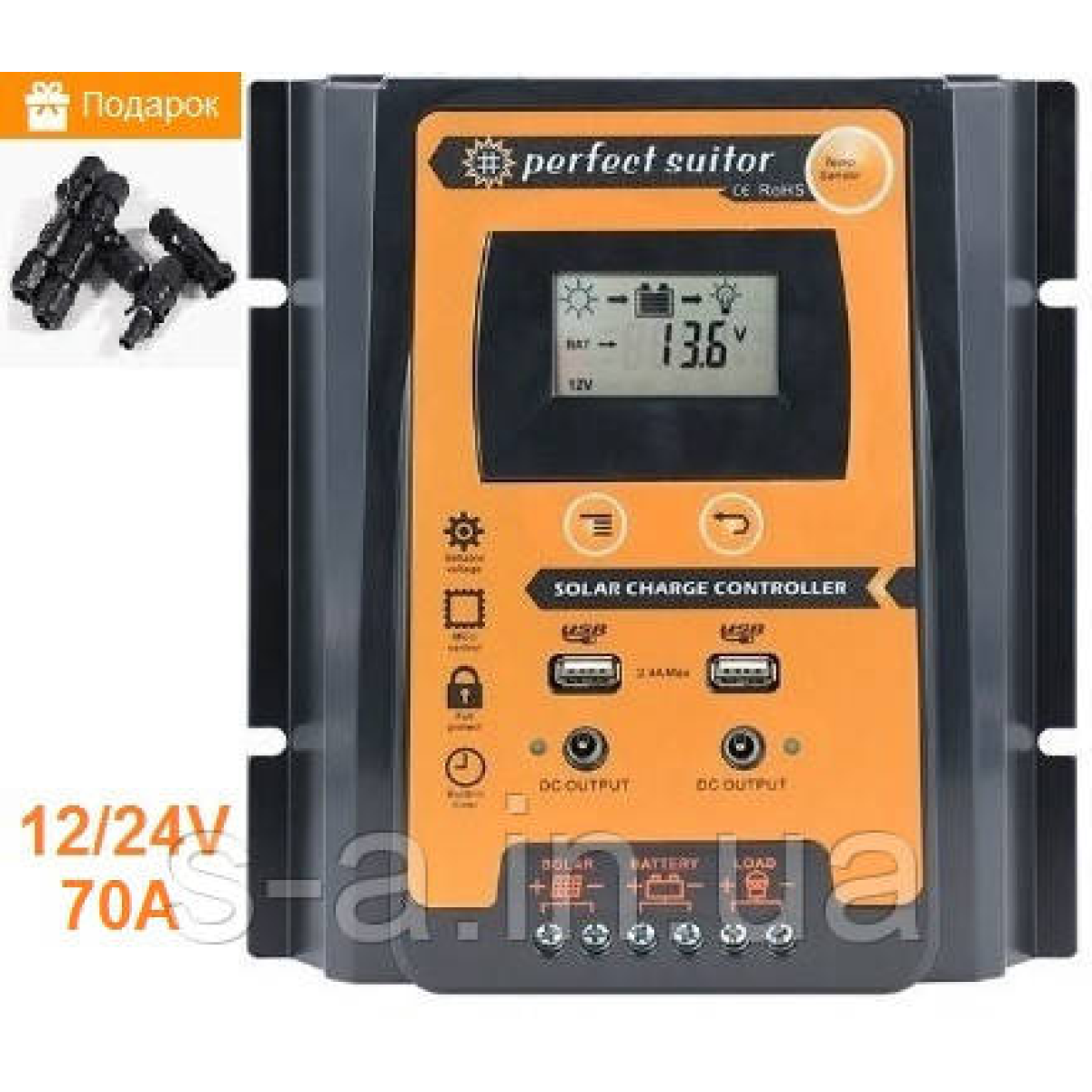 PVSC70A 70А 12/24В Контролер заряду сонячних батарей (модулів) з Дисплеєм + 2USB Контролер заряду