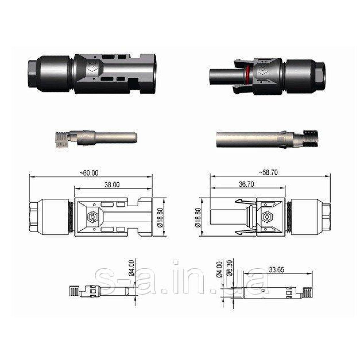Конектори МС4 представляють собою вологозахищені герметичні раз“ємы для комутації сонячних модулів (батарей).