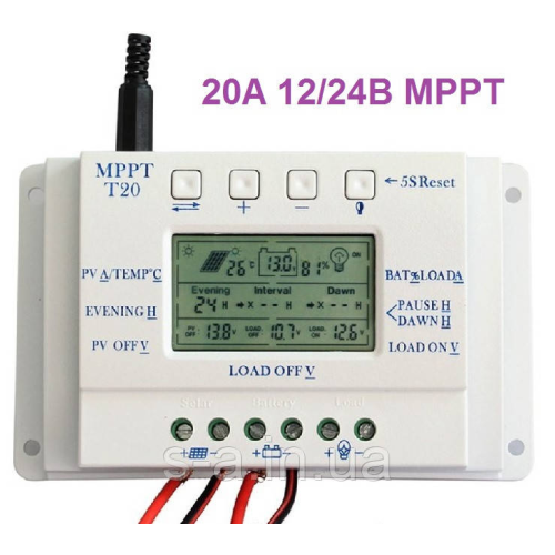 20А 12/24В MPPT Контролер заряду сонячних батарей (модулів) з Дисплеєм Контролер заряду для сонячних модулів