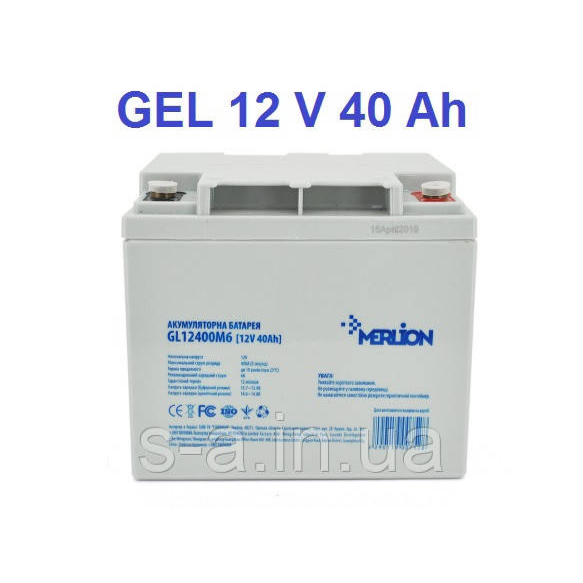 40Аг Гелевий акумулятор для систем резервного та автономного живлення, Сонячних електростанцій СЕС MERLION GL12400M6 12 V 40 Ah (198 x 165 x 170 ) White Q1/96, GEL
