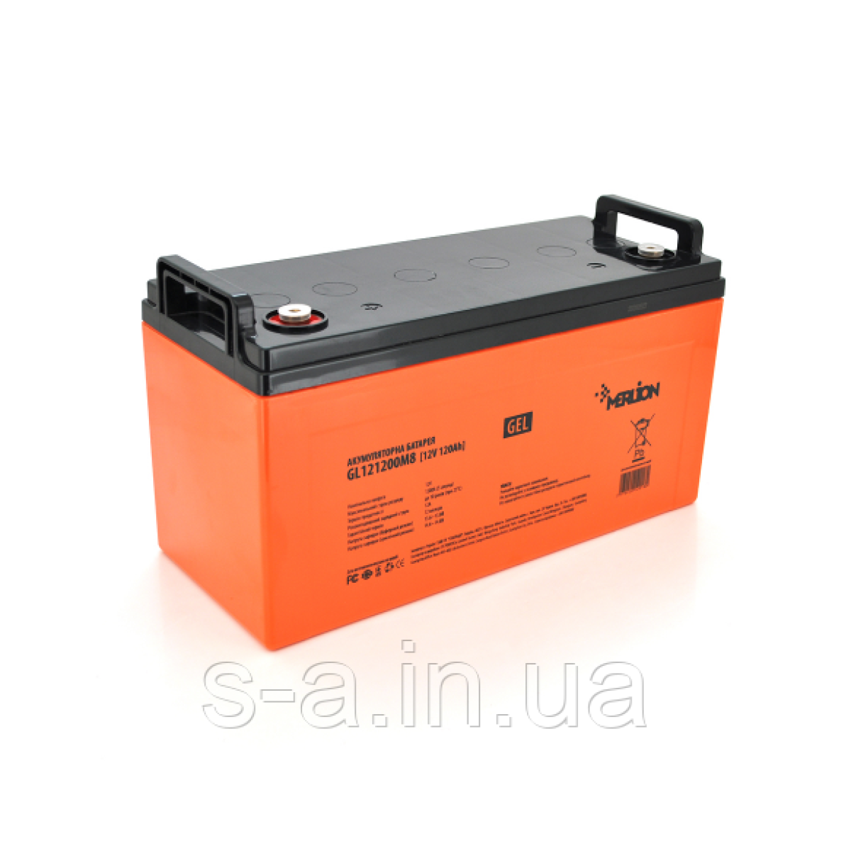 200А*г Гелевий акумулятор для систем резервного та автономного живлення, Сонячних електростанцій СЕС Акумуляторна батарея Акумуляторна батарея MERLION GL122000M8 12 V 200 Ah ( 522 х 240 х 219 ) Q1/18