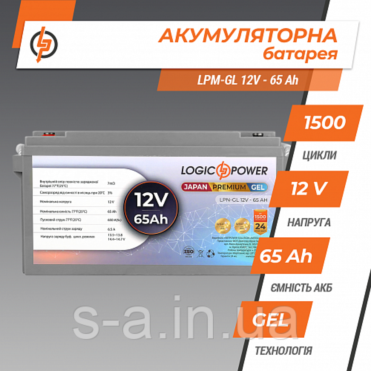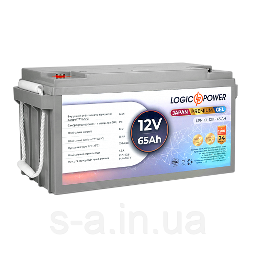Акумуляторна батарея LogicPower лінійки PREMIUM LPN-GL 12 V — 65 Ah виготовлена за технологією GEL із застосуванням новітніх розроблень японських виробників.