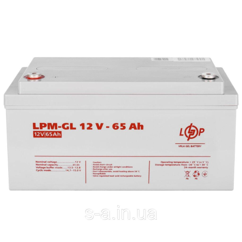 65Ah Акумулятор гелевий LPM-GL 12 V — 65 Ah для систем резервного та автономного живлення, Сонячних електростанцій СЕС, GEL