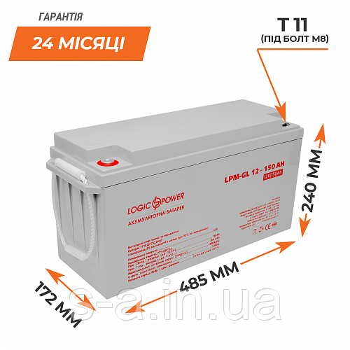 LPM-GL 12 - 150 AH — гелевий акумулятор, який вказує на застосування сучасної технології GEL (використовуються намазні пластини з накладеними на них електролітом у гелеподібному стані).