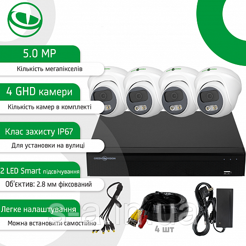 Комплект відеоспостереження GreenVision GV-K-E35/04 5MP