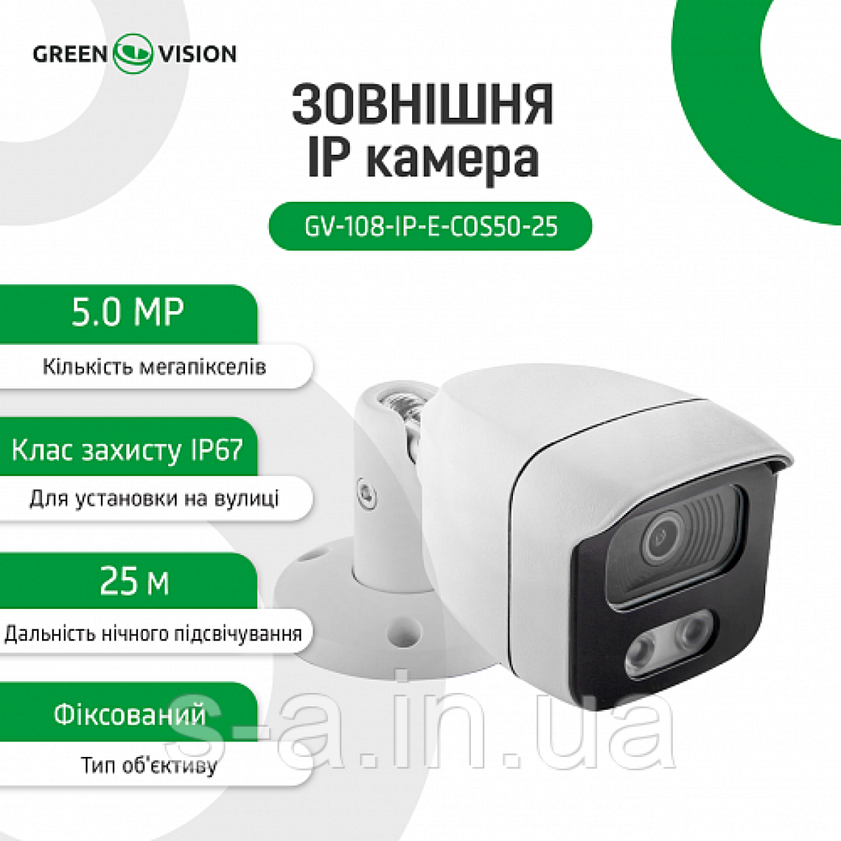 Зовнішня IP-камера GreenVision GV-108-IP-E-COS50-25 POE 5MP (Ultra)