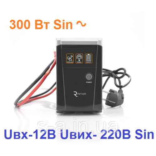 ДБЖ з правильною синусоїдою RITAR RTSW-500 LED (300Вт),12В, під зовнішній АКБ, Q4 (320*132*210) 4,2 кг (260*85*1
