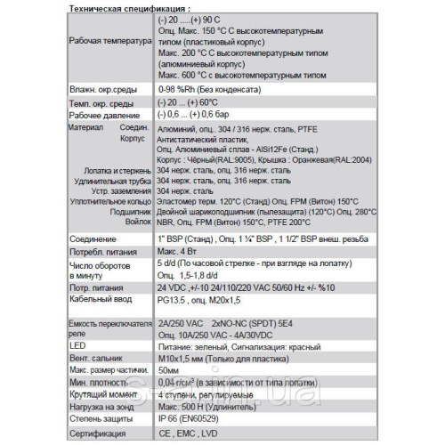 Ротаційний датчик сигналізатор рівня ELF Ротационній датчик сигнализатор уровня