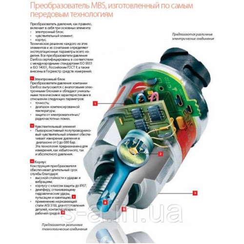 Компактні перетворювачі тиску MBS 3000 призначені для загально промислового застосування й можуть працювати в умовах, забезпечуючи водночас надійні та точні вимірювання. Широка виробнича гама перетворювачів цього типу охоплює різні типи приєднань імпульсних ліній, електричних з“єднань і вихідних сигналів. Є варіанти вимірювання як відносного, так і абсолютного тиску. Відмітними рисами цих перетворювачів є висока вібростійкість, надійна конструкція та чудова перешкодозахищеність. Перетворювачі цього типу відповідають найсуворішим вимогам промисловості.