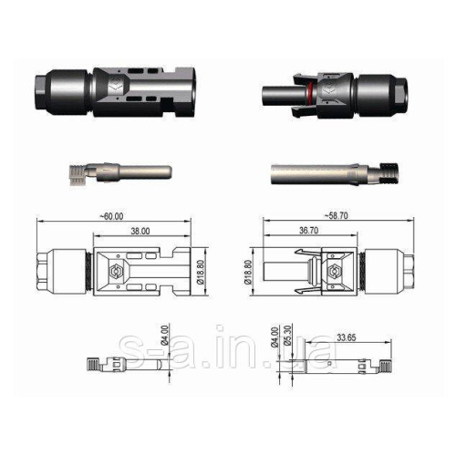 Контактный материал: Высококачественная медь луженаяКонектори МС4 представляють собою вологозахищені герметичні раз“ємы для комутації сонячних модулів (батарей).