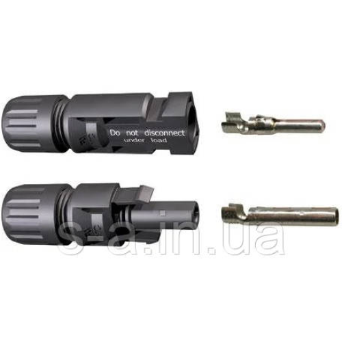На сонячних модулях (батареях) з клемної коробки виходит кабель з такими раз“ємами. МC4 полегшують монтаж сонячних модулів (батарей) та забезпечують надійне герметичне з“єднання.