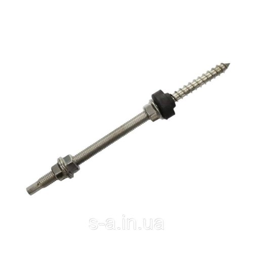 Гвинт-шуруп комбінований (сантехшпилька) - 1 штука та DIN 6923 A2 Гайка шестигранна із зубчастим фланцем - 3 штуки.