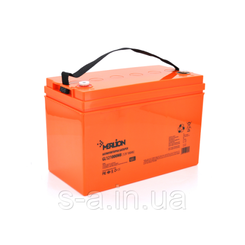 Гелевий акумулятор для систем резервного та автономного живлення, Сонячних електростанцій СЕС Акумуляторна батарея Акумуляторна батарея MERLION GL121000M8 12 V 100 Ah (329 x 172 x 218) White Q1/36, GEL
