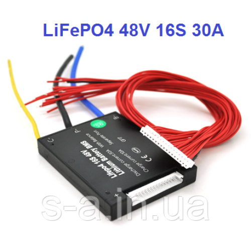 30А 48В BMS контролер заряд-розряд плата HeYo LiFePO4 48V 16S 30A симетрія
