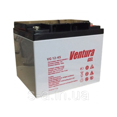 40Ач Гелевий акумулятор для систем резервного та автономного живлення, Сонячних електростанцій СЕС Ventura VG 12-45 Gel 12V 45Ah (198*166*171мм), Q1, GEL
