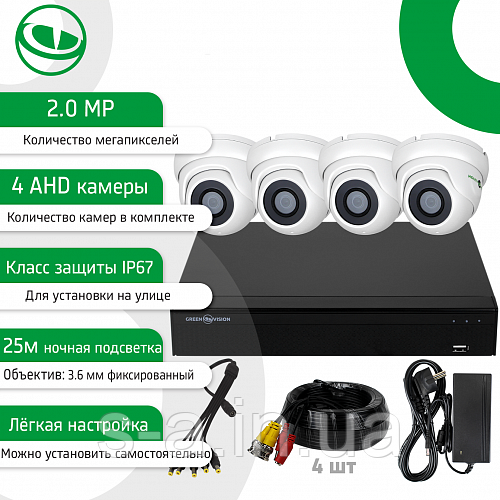 Комплект відеоспостереження GreenVision GV-K-S13/04 1080P