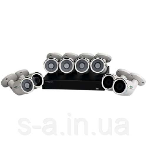 8 камер 2Мр GHD, тип об“єктива 3.6 мм фіксований. Інфрачервона підсвітка дальністю 25 метрів. Тип корпусу циліндр (метал).