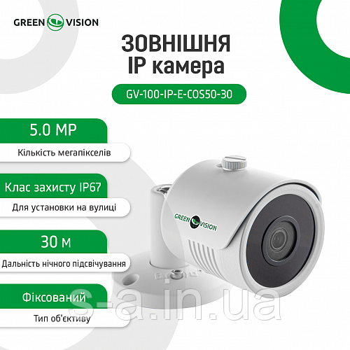 Зовнішня IP-камера GreenVision GV-100-IP-E-COS50-30 POE 5MP (Ultra)