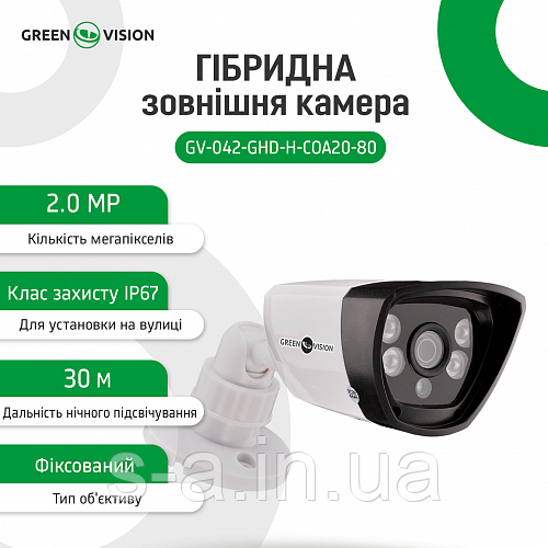 Гібридна зовнішня камера GreenVision GV-042-GHD-H-COA20-80 1080Р (Pro)