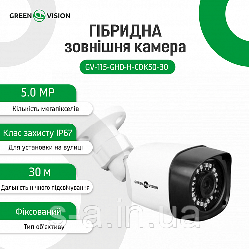 Гібридна зовнішня камера GreenVision GV-115-GHD-H-СOK50-30